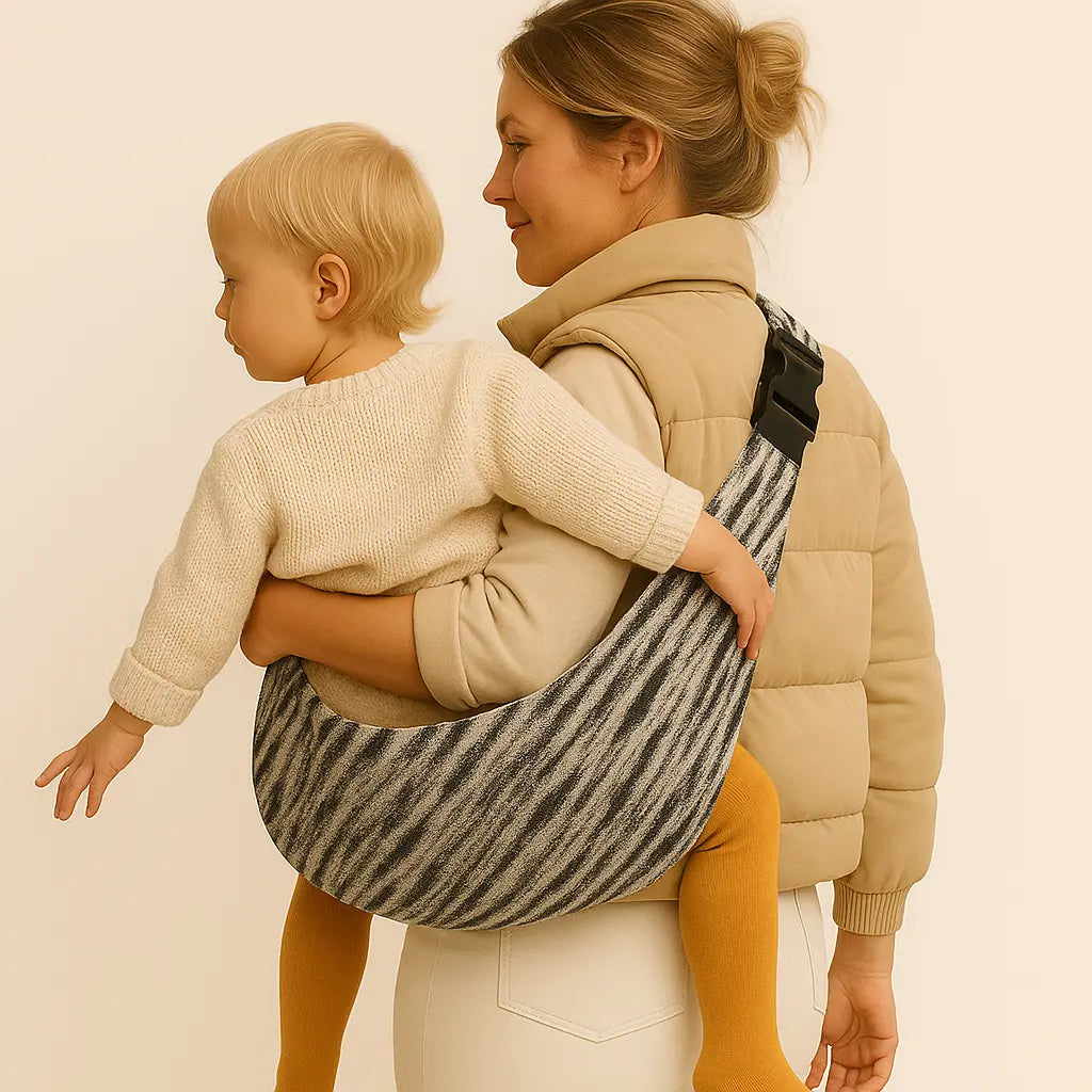 Das weiche, atmungsaktive Material liegt angenehm auf der Haut, die gepolsterte Schulterzone verhindert Druckstellen und der breite Hüftbereich sorgt für eine natürliche, ergonomische Sitzhaltung deines Babys. In Sekunden angelegt und wieder verstaut, ist CozyCarry ideal für kurze Wege, Haushalt, Spaziergänge oder den Alltag zu Hause.